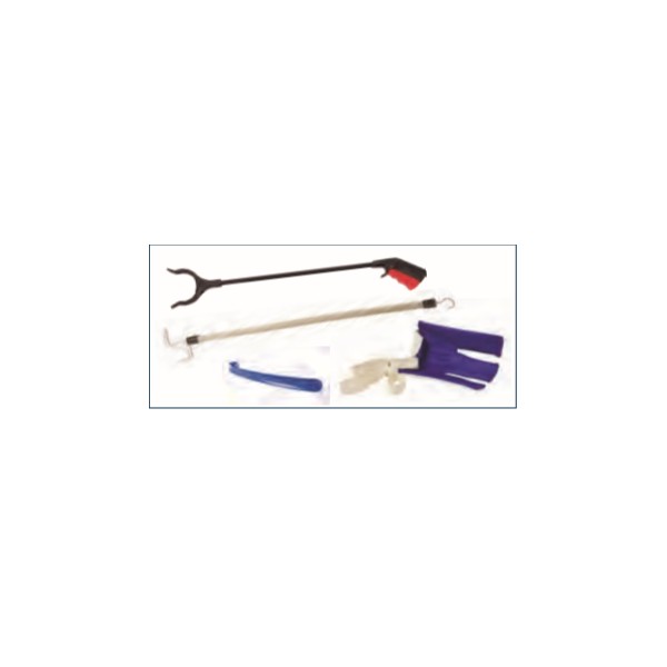 Hip Kit: 26" reacher, 18" platic shoe horn, dressing stick, flex sock aid